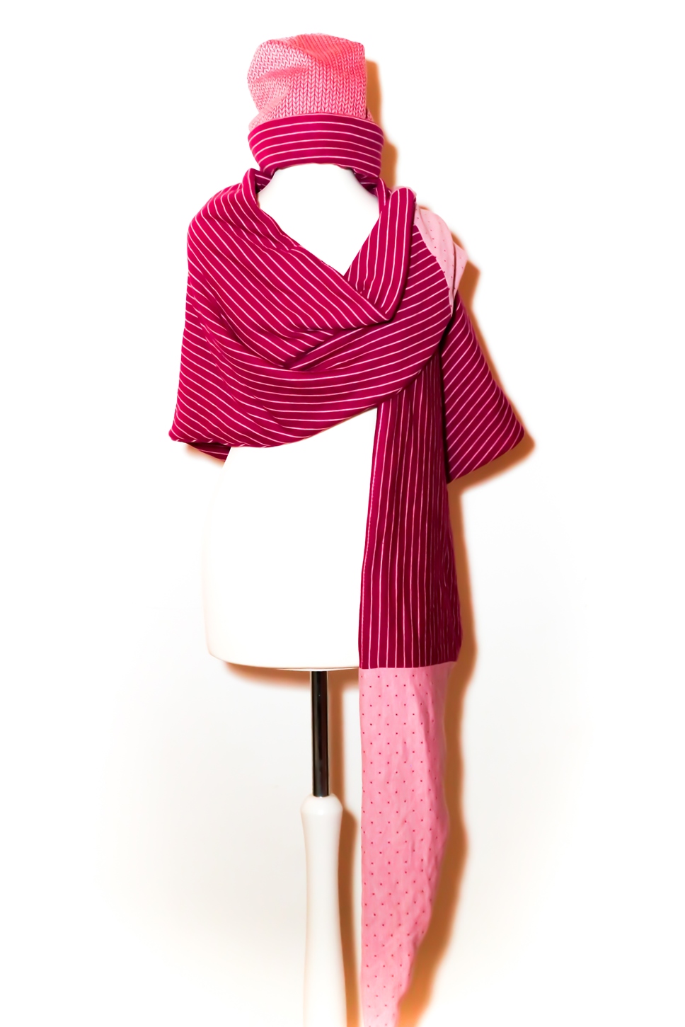 Wir nähen warme Hutmützen und Dreieckstücher zum Einmummeln und Wohlfühlen bei jedem Wetter. Durch „geheime Zutaten“ sorgen wir für einen Thermoeffekt oder Windundurchlässigkeit selbst bei dünnem Jersey.